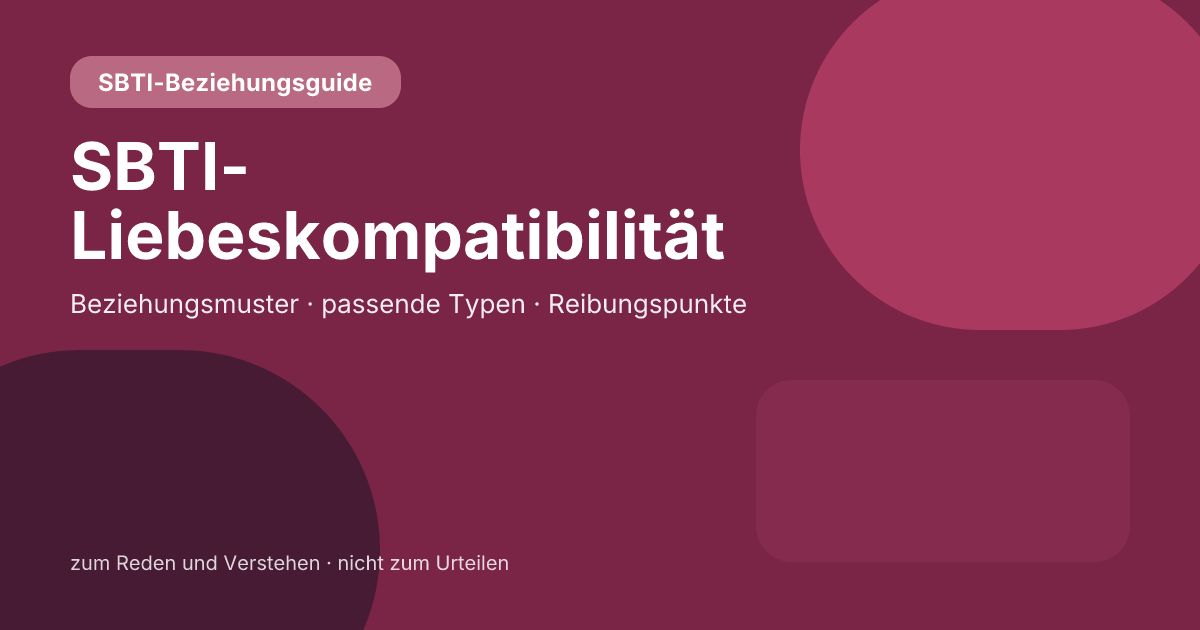 Dieser Guide soll also nicht helfen, „nach Ergebnis einen Partner zu wählen“. Er soll Konfliktpunkte und Ergänzungen in Beziehungen besser benennbar machen. Wenn Sie den Test noch nicht gemacht haben, können Sie zuerst den SBTI-Test machen und danach mit Ihrem Ergebnis zurückkommen.