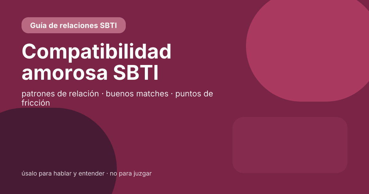 Por eso esta guía no trata de "elegir pareja según el resultado". Sirve para poner nombre a puntos de conflicto y puntos complementarios. Si aún no has hecho el test, puedes hacer primero el test SBTI y volver con tu resultado.