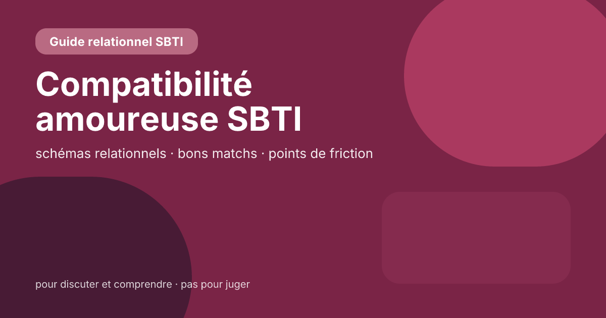 Ce guide ne sert donc pas à « choisir quelqu’un selon son résultat ». Il sert à nommer plus clairement les points de conflit et les points de complémentarité. Si vous n’avez pas encore passé le test, vous pouvez d’abord faire le test SBTI, puis revenir avec votre résultat.