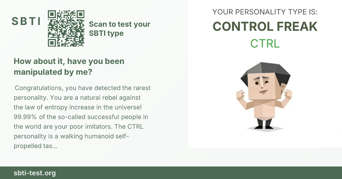 CTRL est le maître absolu du contrôle. Les règles auxquelles la plupart des gens s'accrochent ressemblent pour eux à de simples paramètres d'usine, et les « plans » des autres à des gribouillages improvisés. Avoir un CTRL dans les parages, c'est voir sa vie soudain mieux cadrée. Ils appuient sur Ctrl+S juste avant que tout ne dérape, puis ramènent la situation sur les rails avec une logique terriblement difficile à contester. Dans une vie chaotique, ils sont le dernier disque de sauvegarde encore en ligne et l'unique bouton de réinitialisation qui brille encore avant le crash du système.