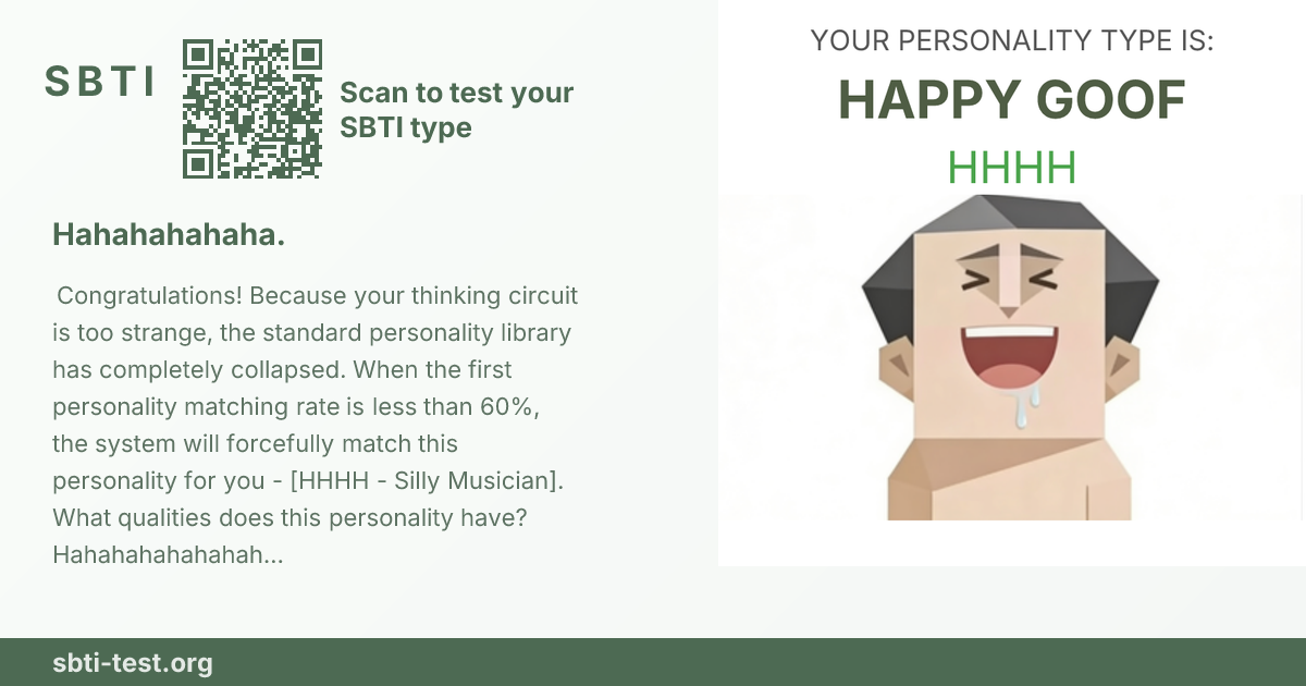 HHHH apparaît uniquement lorsque la bibliothèque de types standard examine votre cerveau et abandonne. Si votre meilleure correspondance tombe trop bas, le système hausse les épaules et vous jette ici avec un rire nerveux. Quelles sont les caractéristiques principales ? Surtout du chaos, un câblage étrange et un rire qui semble à moitié amusé et à moitié désolé. Haha... je ris jusqu'à ce que je commence à pleurer. Comment le câblage cérébral de quelqu'un peut-il être aussi sauvage ?