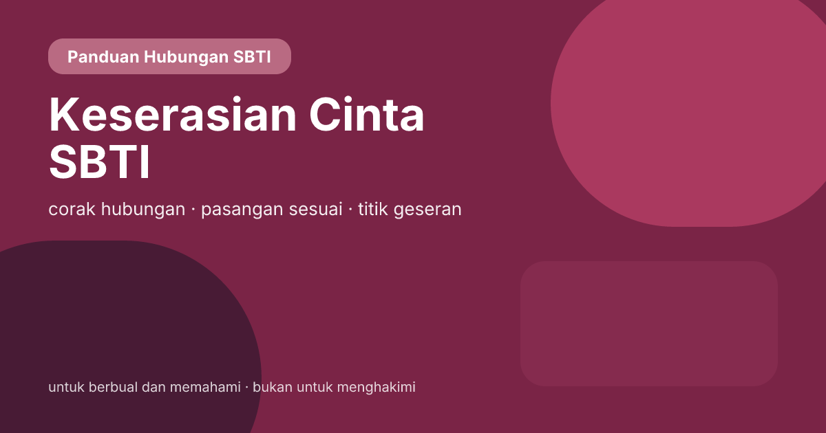 Keserasian cinta SBTI paling mudah disalah guna menjadi satu ayat: siapa boleh bercinta dengan siapa, dan siapa tidak patut bercinta dengan siapa.