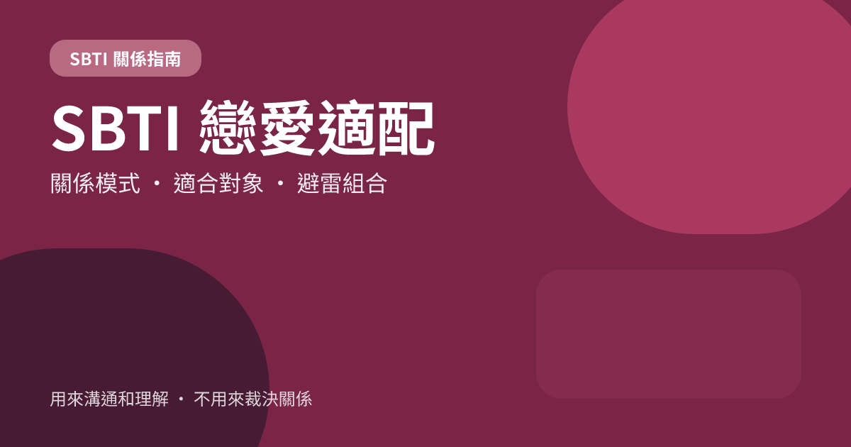 所以這篇指南的重點不是「按結果找對象」,而是幫你把關係裡的衝突點和互補點說清楚。如果你還沒測過,可以先去 SBTI 測試 得到自己的結果,再回來看這篇會更直觀。